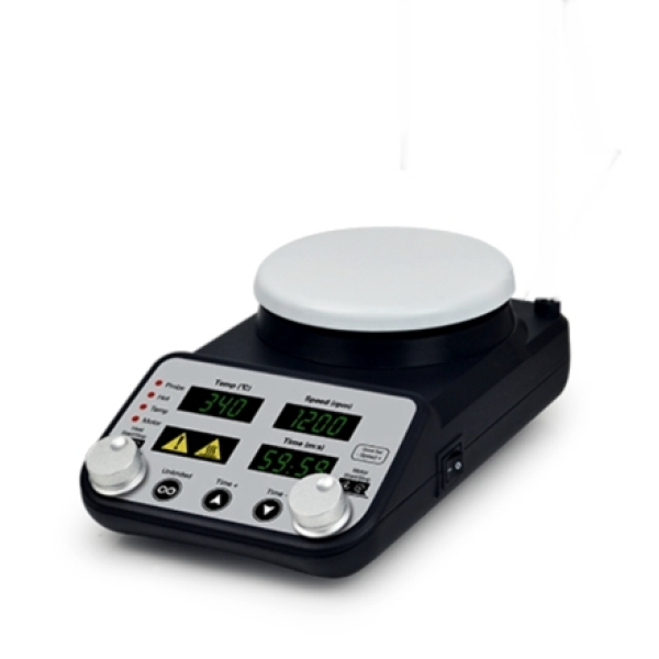 電磁攪拌器的工作原理是由微電機帶動耐高溫強力磁鐵旋轉產生旋轉磁場,來驅動容器內的攪拌子轉動,以達到對容器內液體進行攪拌的目的。同時還可以對溶液進行同步加熱,使溶液在設定的溫度中得到充分的混合、反應。故廣泛應用於生物、化學、化工等領域。