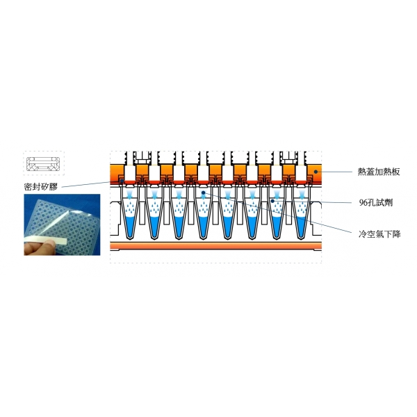 1.熱蓋採用密封性極佳的矽膠材料,加上熱蓋垂直下壓設計,每個孔內的樣品試劑在實驗中零蒸發。