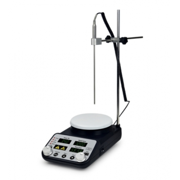 電磁攪拌器的工作原理是由微電機帶動耐高溫強力磁鐵旋轉產生旋轉磁場,來驅動容器內的攪拌子轉動,以達到對容器內液體進行攪拌的目的。同時還可以對溶液進行同步加熱,使溶液在設定的溫度中得到充分的混合、反應。故廣泛應用於生物、化學、化工等領域。