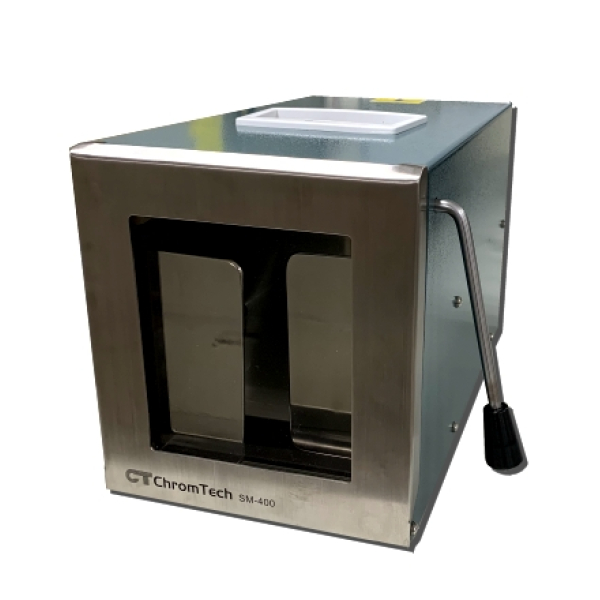- 經由儀器背部的旋鈕可以方便調節拍擊板與安全門之間的距離,以適用於不同的破碎要求。